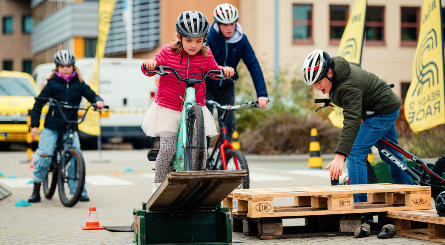 We organiseren ook activiteiten voor kinderen. Tijdens het Ready2Race-programma maak je op een leuke manier kennis met de wielersport en Team Visma | Lease a Bike. Test bijvoorbeeld jouw skills op het kidsparcours, maak een rondje op een racefiets of neem een kijkje in een ploegleidersauto van het team.