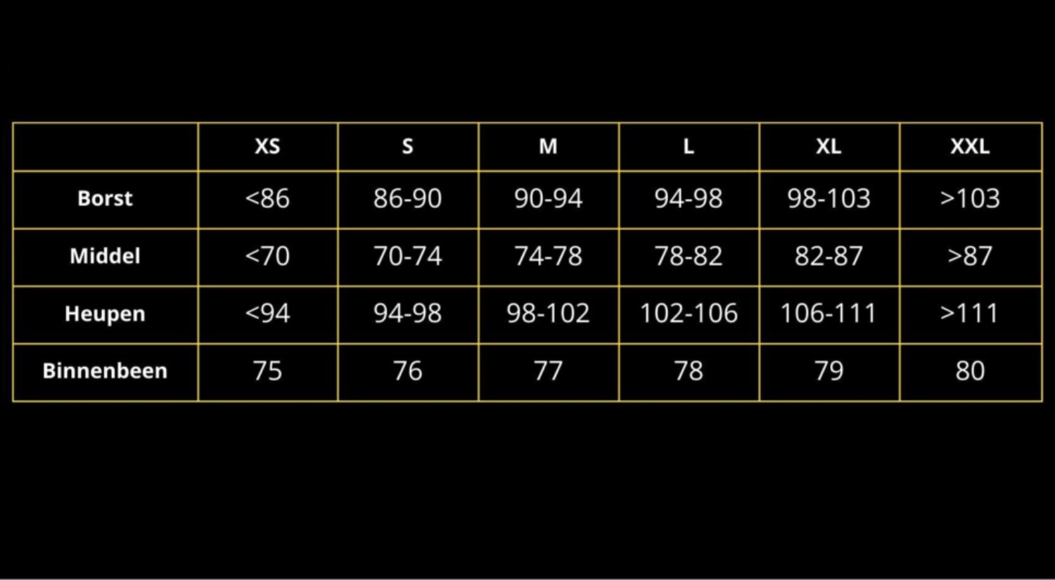 - De binnenbeenlengte van een broek wordt gemeten vanaf het kruis tot aan de onderkant van de broekspijp.