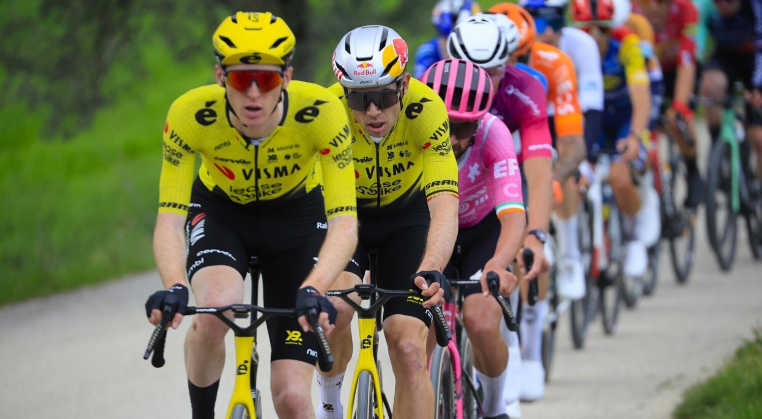 Timo Kielich sprong mee in de kopgroep en bouwde met zijn elf medevluchters een ruime voorsprong op. Toen de Belg kort voor de steile passages in de finale weer aansloot bij het al wat uitgedunde peloton kon het ploegenspel van Team Visma | Lease a Bike beginnen. Kielich zette het duo Van Aert en Jorgenson op het juiste spoor, waarna de Amerikaanse kopman knap werk verrichte op de Tortoreto.